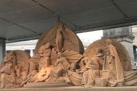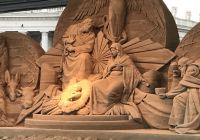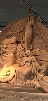 Dieses Jahr die Krippe in Sankt Peters Platz wurde aus dem Sand geformt, der aus der Badeortstadt Jesolo (Venedig) stammt. Die Stadt Jesolo die Sandkrippe seit 2002 organisiert. Die Krippe ist eine Überlieferung von Franz von Assisi. Der heilige Franz von Assisi, kam in der Vorweihnachtszeit des Jahres 1223 auf die Idee, in den Bergen Umbriens ein neues Bethlehem zu errichten.
